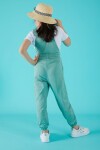 Yeşil Yazı Baskılı Tişörtlü Kız Salopet Tulum 15683