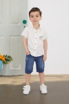 Yeşil Yazılı Kısa Kol Gömlekli Jean Şortlu Erkek Çocuk Takım