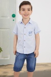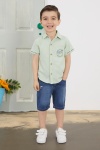 Yeşil Yazılı Kısa Kol Gömlekli Jean Şortlu Erkek Çocuk Takım 18758