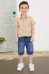 Kumaş İçeriği: %80 Pamuk %20 Keten İçerikli Kumaştır. Yazı Baskılı, Göğüs Cepli Kısa Kol Gömlek ve Jean Şorttan Oluşan Erkek Çocuk Takım Modeli. Sade ve Şık Yapısıyla Çocuklarınızın Tarzına Tarz Katacak Takım Modeli. Maximum 30 Derece Sıcaklıkta Yıkayınız. Ağartıcı Kullanmayınız. Orta Sıcaklıkta Ütüleyiniz. Kuru Temizleme Önerilmez. Tamburlu Kurutma Uygulanmaz.