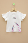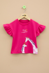 Kumaş İçeriği: 98 Pamuk %2 Elastan İçeriklidir. Türkiye'de Üretilmiştir. Zürafa Baskılı Fırfırlı, Kısa Kollu Kesimi ile Şık Kız Çocuk Tişört Modeli.