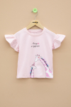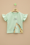Yeşil Zürafa Baskılı Fırfırlı Kız Bebek Kısa Kol Tişört 20993