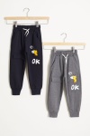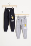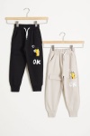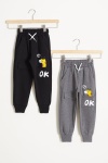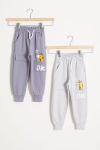 Zürafa Baskılı Cep Detaylı Erkek Çocuk 2'li Eşofman Altı Siyah-Koyu Gri 18385